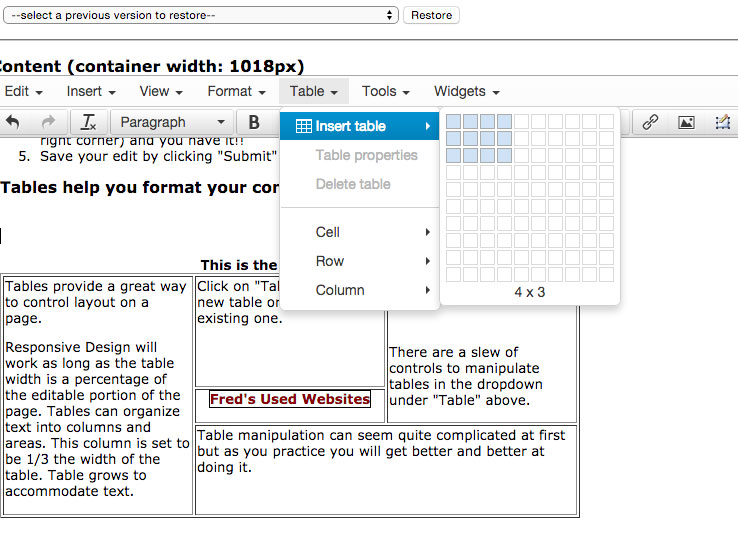 In order for tables to work within Responsive Design , the table width must be a percentage of the editable portion of the page. Tables can organize text into columns and areas. This column is set to be 1/4 the width of the table. Table height grows to accommodate text. |